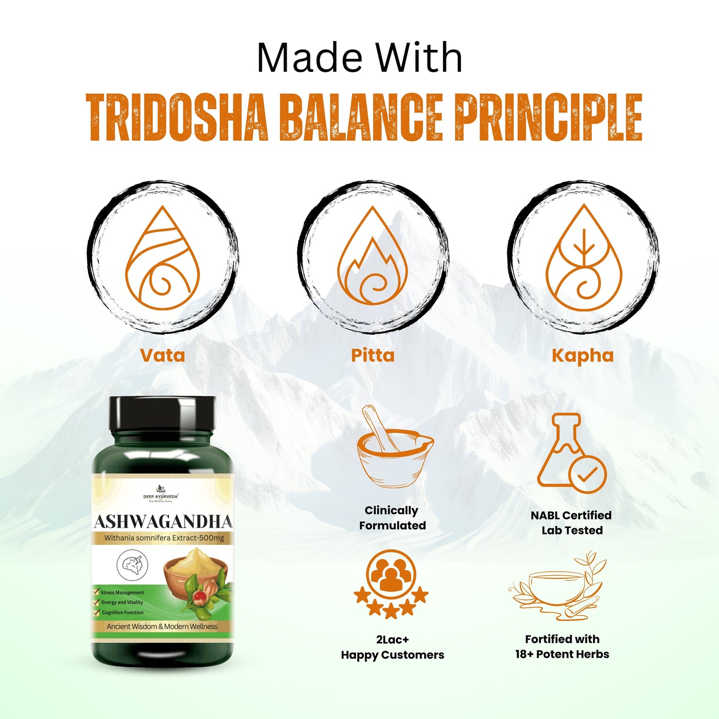 Deep Ayurveda’s Ashwagandha capsules are a premium adaptogen made for those seeking noticeable stress relief, better sleep, and enhanced vitality. Rooted in traditional Ayurvedic wisdom and crafted in a GMP‑certified, TGA‑compliant facility, each 500 mg capsule delivers a potent 10:1 root extract of Withania somnifera.